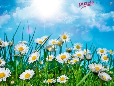 Trawa, Słońce, Łąka, Stokrotki, Chmury