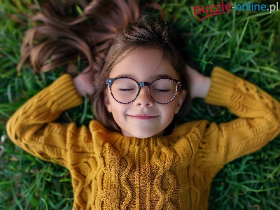 Puzzle Sweter, Dziewczynka, Okulary, Trawa