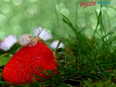 Trawa, Bokeh, Åšlimak, Truskawka, Makro