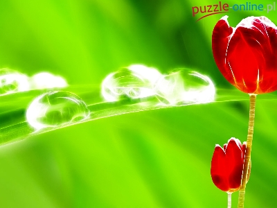 Puzzle Trawa, Czerwone, Tulipany, Rosa