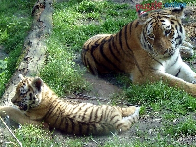 Puzzle Trawa, Tygrys, Tygrysiątko, Kłoda
