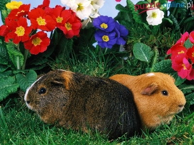Puzzle Trawa, Dwie, Świnki, Kwiaty