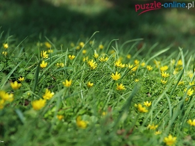 Puzzle Żółte, Ziarnopłon Wiosenny, Trawa, Kwiaty