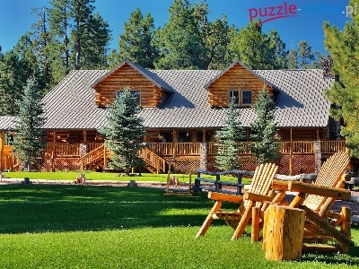 Puzzle Trawnik, Drewniany, Dom, Leżaki