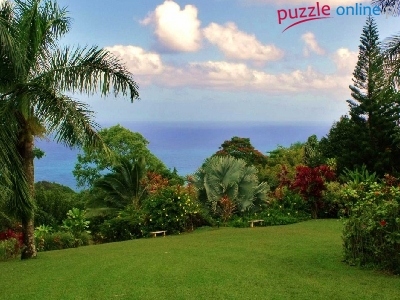 Puzzle Trawnik, Ogród, Palmy, Roślinność