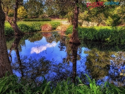 Trawy, Jezioro, Drzewa, Odbicie