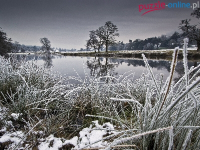 Puzzle Trawy, Rzeka, Drzewa, Zima