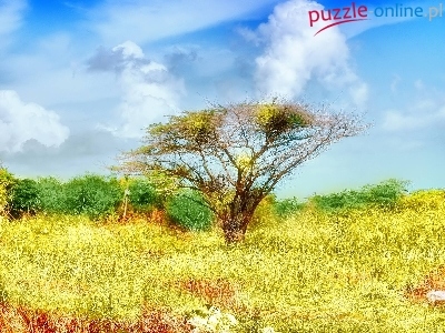 Puzzle Trawy, Chmury, Kolorowe, Drzewo