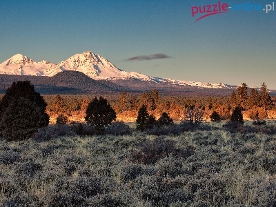 Puzzle Trawy, Góry, Niebo, Drzewa