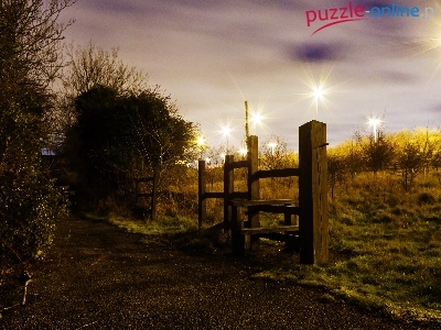 Puzzle Trawy, Dróżka, Ogrodzenie, Światła
