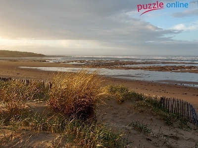 Puzzle Trawy, Morze, Plaża, Chmury