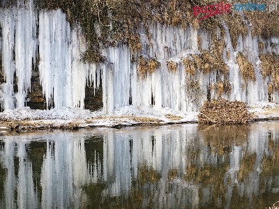 Trawy, Rzeka, Zima, Sople, Rośliny