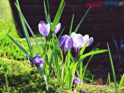 Trawy, Światło, Krokusy, Zdzbła, Mech