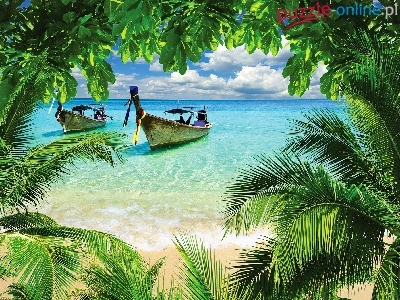 Puzzle Tropikalna, Ocean, Łodzie, Plaża