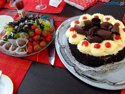 Puzzle Truskawki, Tort, Czekoladowy, Nóż