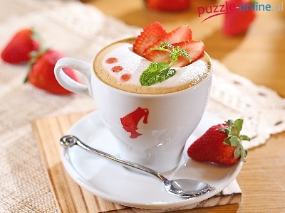 Puzzle Truskawki, Kawa, Filiżanka, Łyżeczka