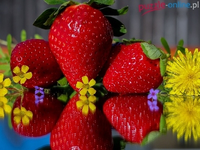 Puzzle Kwiaty, Truskawki, Odbicie