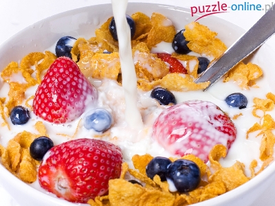 Truskawki, Jagody, Płatki, Śniadaniowe, Mleko
