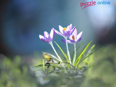 Rozświetlone, Trzy, Fioletowe, Kwiaty, Krokusy