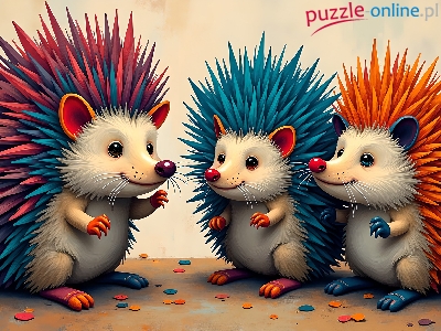 Puzzle Jeże, Trzy, Kolorowe, Grafika AI