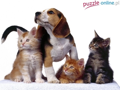 Puzzle Trzy, Zapatrzony, Pies, Koty