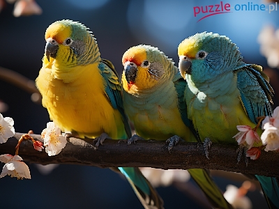 Gałąź, Konury, Papugi, Trzy, Kwiaty, Ptaki