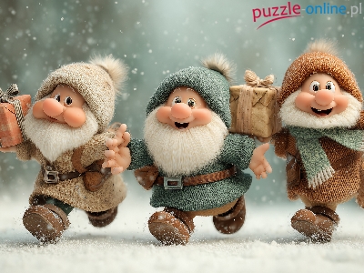 Puzzle Prezenty, Trzy, Skrzaty, Grafika AI