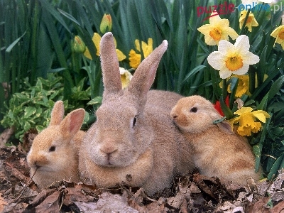 Puzzle Zajączki, Trzy, Żonkile