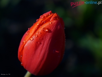 Puzzle Tulipan, Czerwony, Kwiat, Krople
