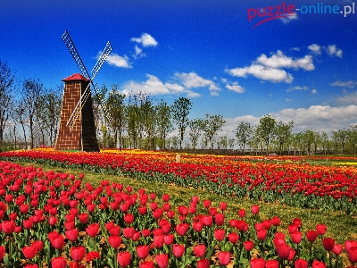 Puzzle Tulipanów, Połacie, Czerwonych, Wiatrak