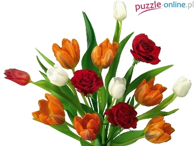 Puzzle Tulipanów, Bukiet, Kolorowych, Róż