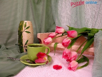Puzzle Tulipanów, Bukiet, Różowych, Filiżanka