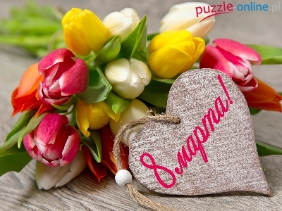 Tulipany, Napis, Dzień Kobiet, Bukiet, Serce