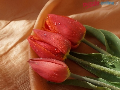 Tulipany, Bukiet, Leżące, Czerwone, Krople