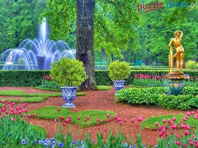 Tulipany, Posąg, Park, Fontanna, Złoty