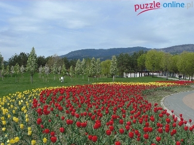 Puzzle Tulipany, Park, Klomb, Góry