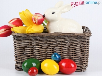 Tulipany, ZajÄ…czek, Jajka, Porcelanowy, Koszyk, Wielkanocne