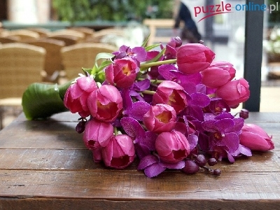 Puzzle Tulipany, Bukiet, Kwiaty, Storczyki