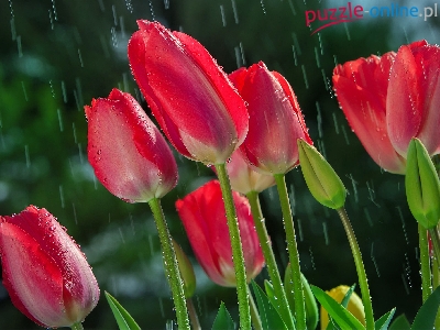 Puzzle Kwiaty, Tulipany, Deszcz