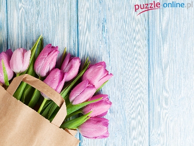 Błękitne, Jasnofioletowe, Kwiaty, Tulipany, Deski, Torba papierowa