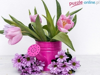 Puzzle Tulipany, Konewka, Kwiaty, Chryzantemy