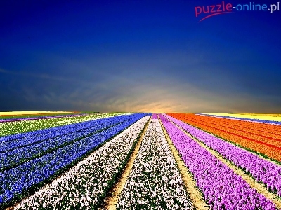 Puzzle Tulipany, Pole, Kwiaty, Niebo