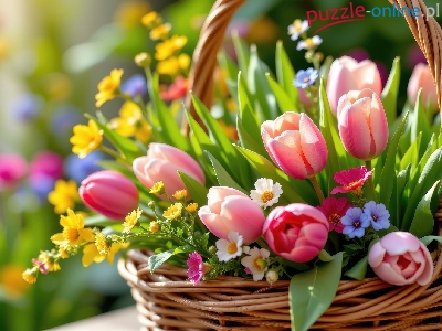 Kolorowe, Tulipany, Kwiaty, Koszyk, Wiklinowy
