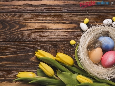 Tulipany, Wielkanoc, Pisanki, Żółte, Deski