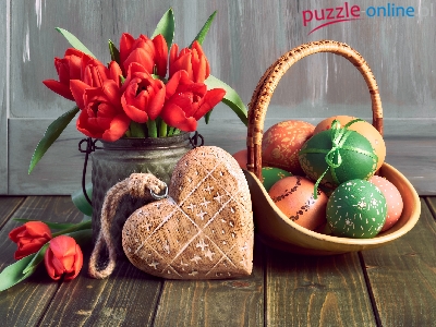Serce, Święta, Pisanki, Tulipany, Koszyk, Wielkanoc, Czerwone