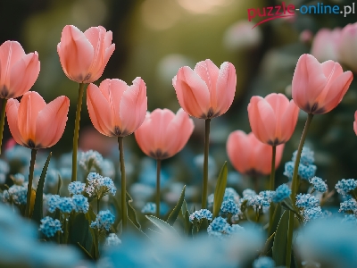Puzzle Różowe, Kwiaty, Kwitnące, Tulipany