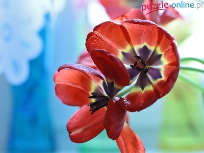 Puzzle Tulipany, Czerwone, Rozwinięte, Kwiaty