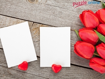 Serduszka, Tulipany, Deski, Czerwone, Walentynki, Kwiaty, Kartki