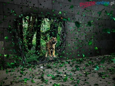 Puzzle Ściana, Tygrys, Liście
