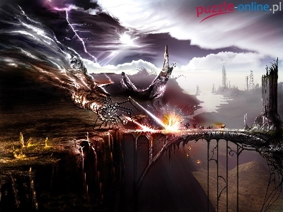 Ucieczka, Fantasy, Niebo, Most, Potwór